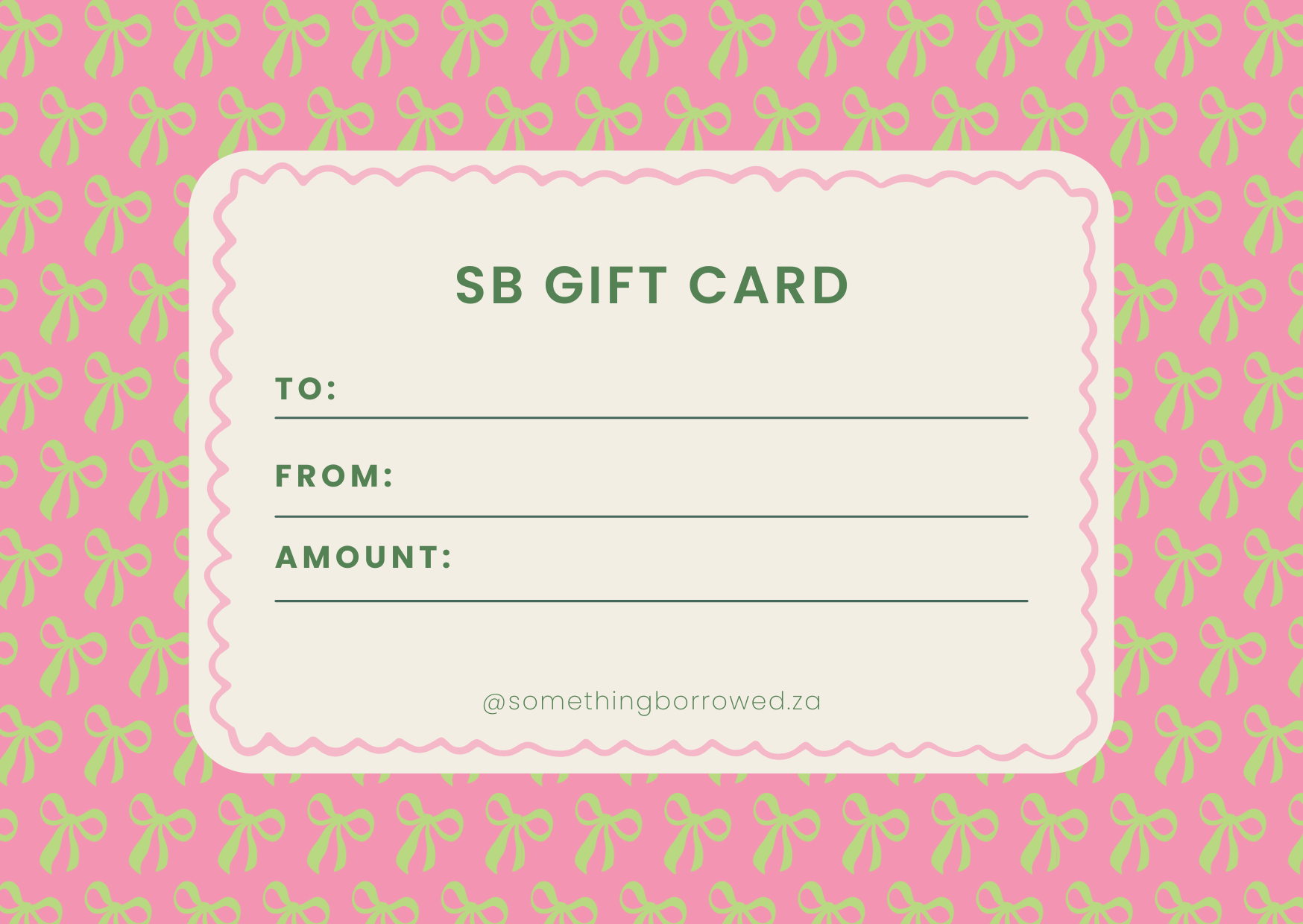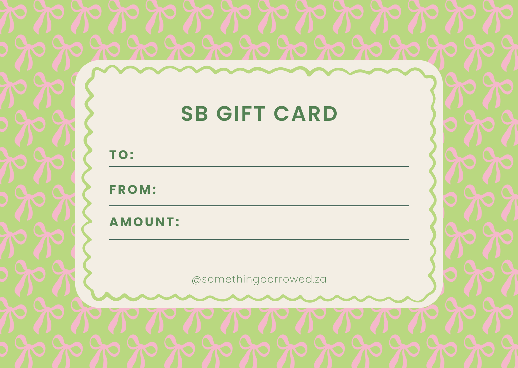 Give the gift of glamour with a Something Borrowed Gift Card! Valid for two fabulous years, this card includes an exclusive try-on session at our Johannesburg studio. The perfect treat for a fashion-forward friend or loved one.