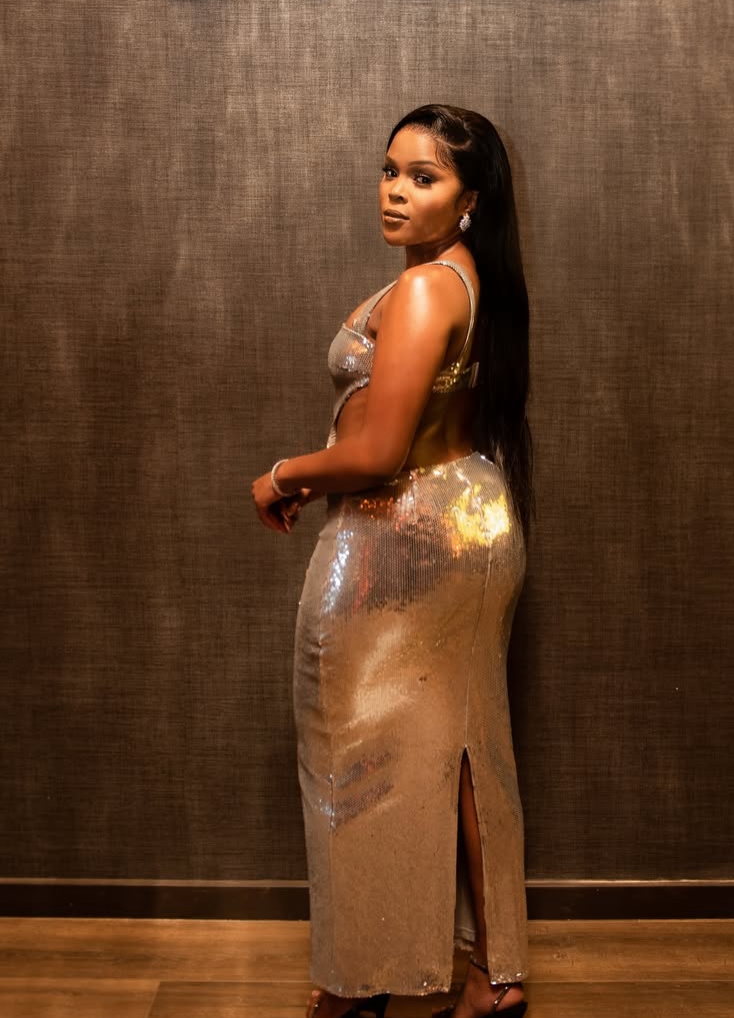 Beyond its striking design, the Adoria silver dress is crafted from high-quality sequined fabric that catches the light beautifully, ensuring you sparkle and shine throughout the night. The strategic cutouts are not only flattering but also add a modern twist to a classic silhouette, making it a standout piece for any occasion. The fully lined interior ensures comfort, allowing you to dance and move freely while maintaining the dress's stunning shape.