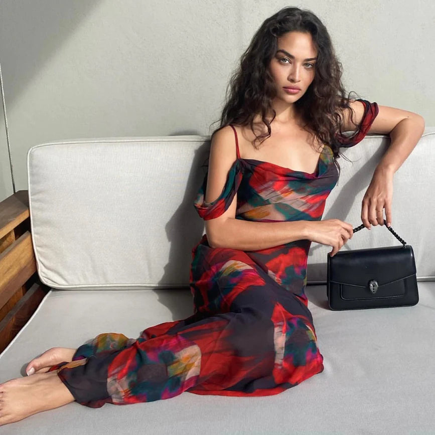Slip into the Adriana and get ready to be romanced. With its 90s-inspired cut and sultry draped shoulder cuffs, this slinky slip is perfect for special drinks, parties, and everything in between. Love has never looked so good!