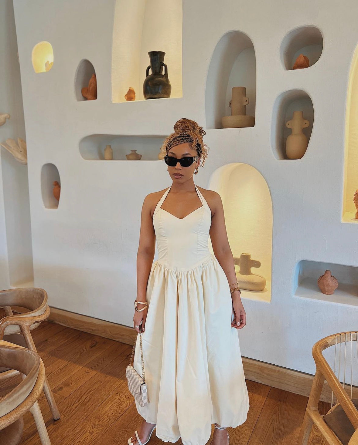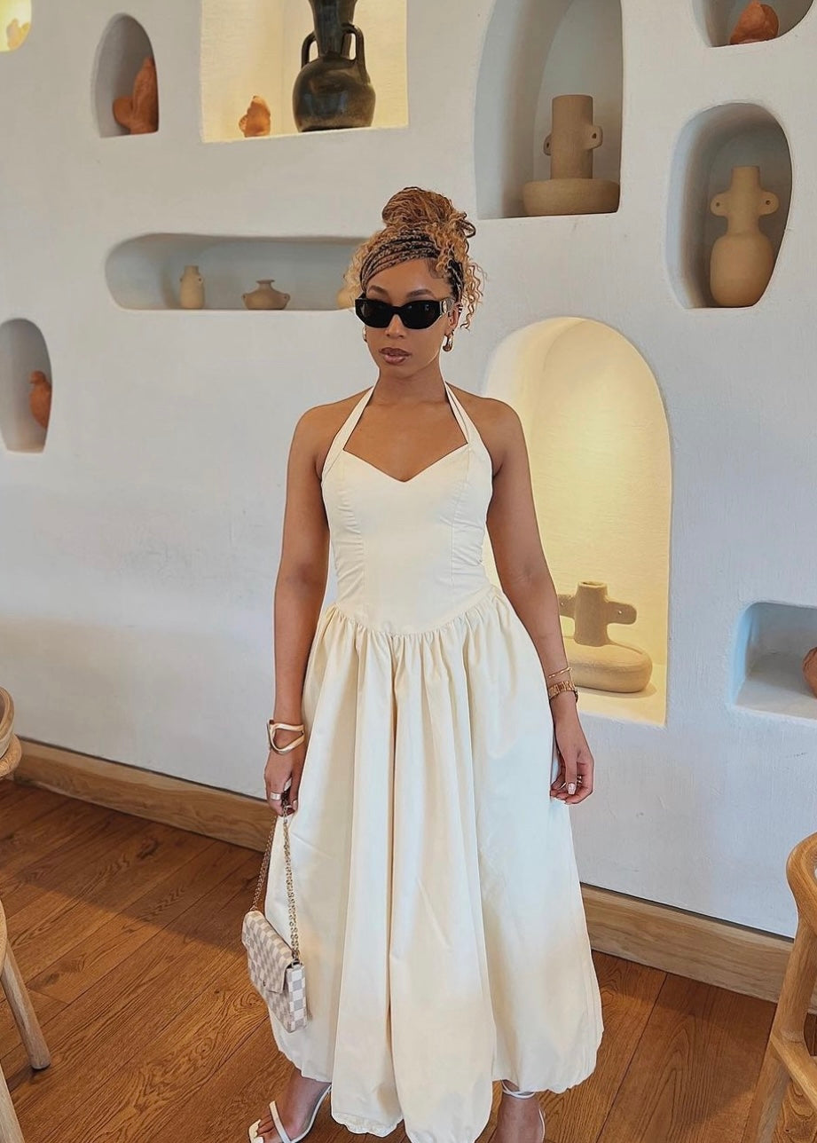The Alex dress by local Cape Town brand Rethread is the ultimate statement piece! With sculpted drama and a corset-like neckline featuring a criss-cross detail, it's sure to turn heads on any occasion. From a casual picnic to a night out, you'll be sure to stand out while looking effortlessly chic!