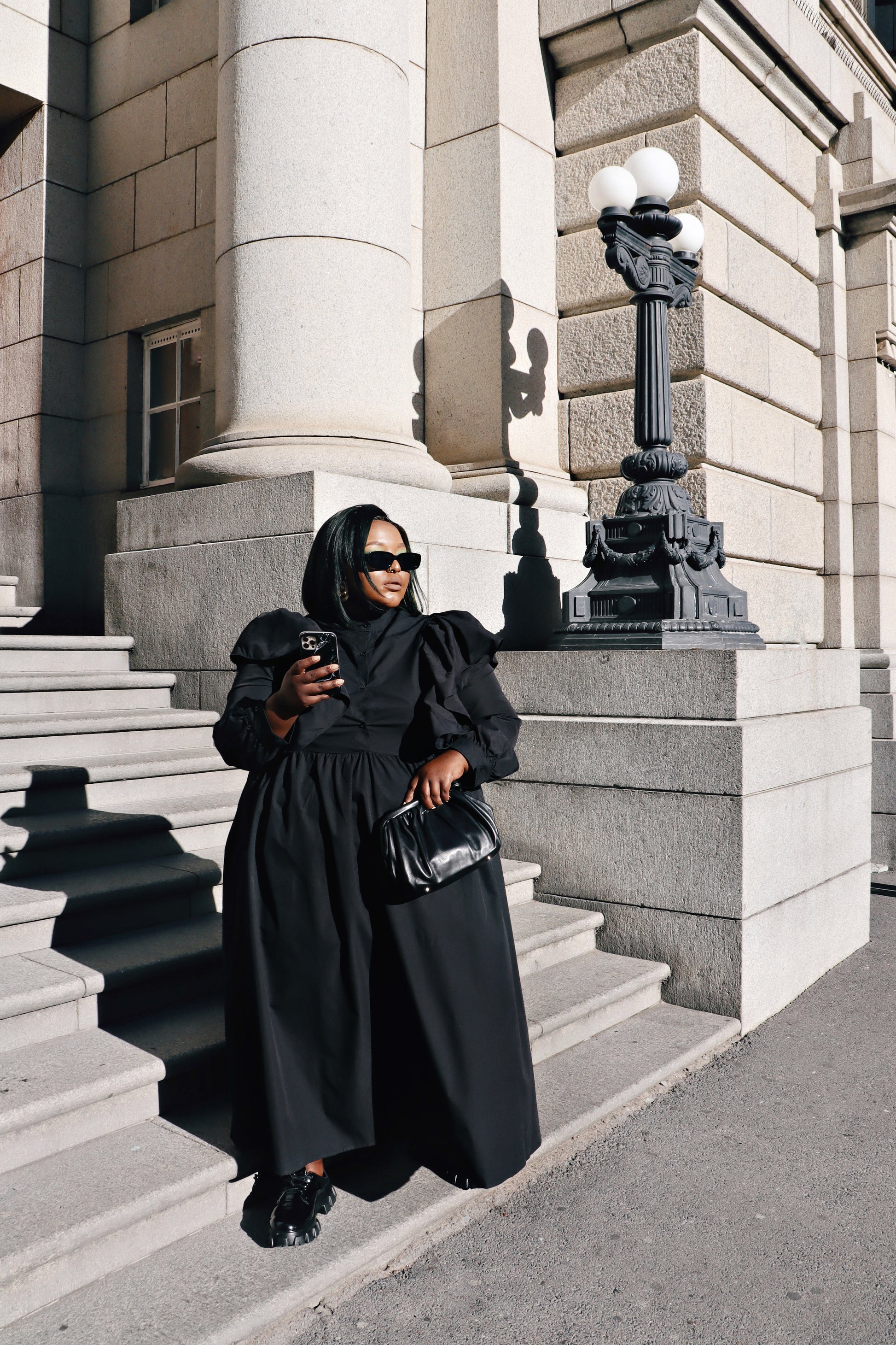 Introducing "The Sable," as seen on the radiant Yoliswa Mqoco! 💫 This elegant yet stylish black dress is a true showstopper. With its long sleeves, distinctive button-up detail, and charming frill shoulders, it exudes a timeless charm and modest elegance. Perfect for any occasion, this dress will effortlessly elevate your look with its sophisticated silhouette and chic design.